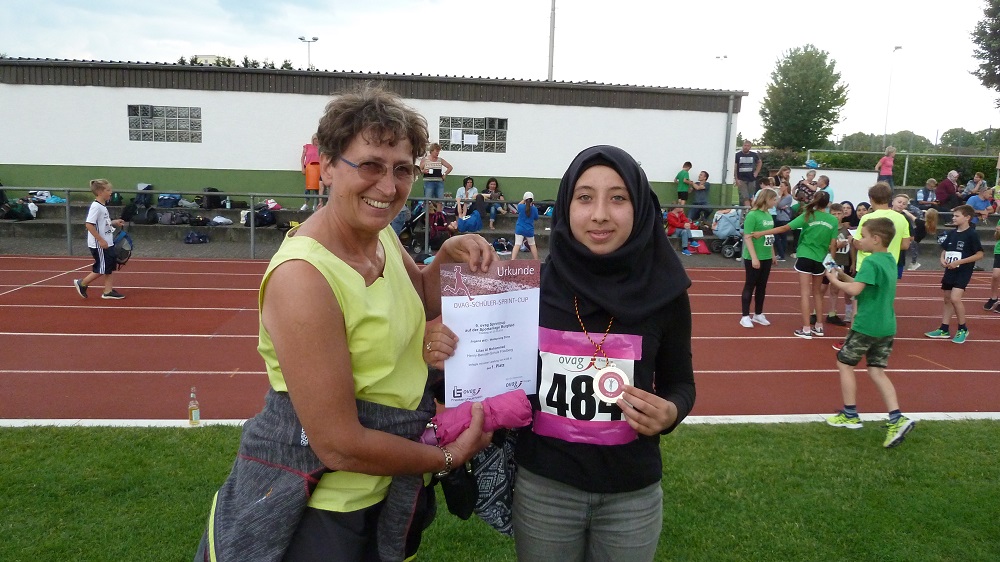 Mit 40 Schülerinnen und Schülern der Jahrgänge 2005 bis 2007 und fünf Sportkolleg/innen der Henry-Benrath-Schule nahmen wir am 23. Mai 2018 am OVAG-Schüler-Sprint-Cup teil. Wetter und Stimmung waren sehr gut. Weitsprung, 30-Meter-Sprint fliegend und Pendel-Staffellauf – das waren die Disziplinen, in denen sich die Sportler messen wollten. Die Konkurrenz war groß. Sportklassen und Leichtathleten aus Vereinsmannschaften waren unter den Gegnern. Wir waren mit einer sportfreudigen Gruppe gekommen, hatten aber nicht extra für den Wettkampf trainiert.