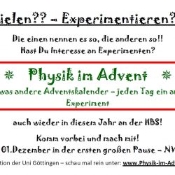 Spielen? Experimentieren? Die einen nennen es Spielen, die anderen nennen es Experimentieren. Bei „Physik im Advent“ wird vom 1. bis zum 24. Dezember jeden Tag per Video-Clip ein Experiment zum Nachmachen vorgestellt. […] Mehr lesen