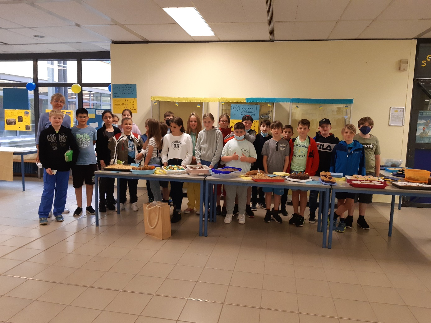 Es beteiligte sich die Klasse 5 G1 durch einen Kuchenverkauf. Die Zehntklässler organisierten eine Tombola, wobei der Gymnasialjahrgang der Klasse acht bereits am 07.04.22 in Friedberg Sachpreise sammelte. In den großen Pausen wurden am Tag der Aktion in der Pausenhalle Lose sowie Kuchen verkauft. Es konnte dadurch eine Summe von knapp 800 Euro erwirtschaftet werden, wovon gut die Hälfte für Schulmaterial in den Intensivklassen eingesetzt wird.
