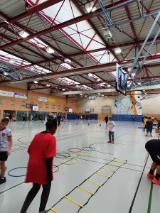 Mit Musik und Ansagen für den Partner- und Stationswechsel funktioniert der jährliche Fitnesszirkel über die drei Felder der Halle zeitgleich mit drei Klassen, die Jahrgangs- und Zweigübergreifend zusammen trainieren, optimal. Da helfen die Großen den Kleinen und so Mancher staunt nicht schlecht über die Ergebnisse des Trainings. Konditionelle und koordinative Fähigkeiten werden geschult und kurz vor Weihnachten abgeprüft.