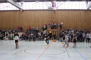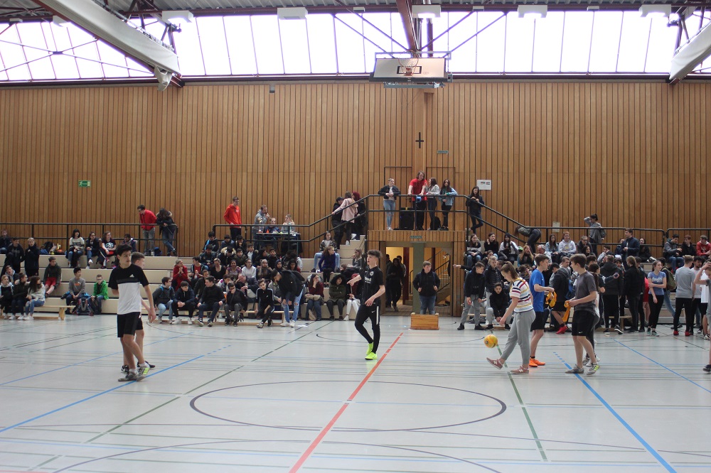 Schon in der Vorrunde konnten die zahlreichen Zuschauer aus Schulgemeinde viele spannende Spiele mit vielen knappen Ergebnissen miterleben. Die Sieger der 4 Vorrundengruppen qualifizierten sich für das Halbfinale und die Gewinner dieser Spiele kamen ins Finale. Das Finale endete unentschieden, so dass die Klasse 10G3 sich erst im Elfmeterschießen gegen die Klasse 10G2 knapp durchsetzen konnte.