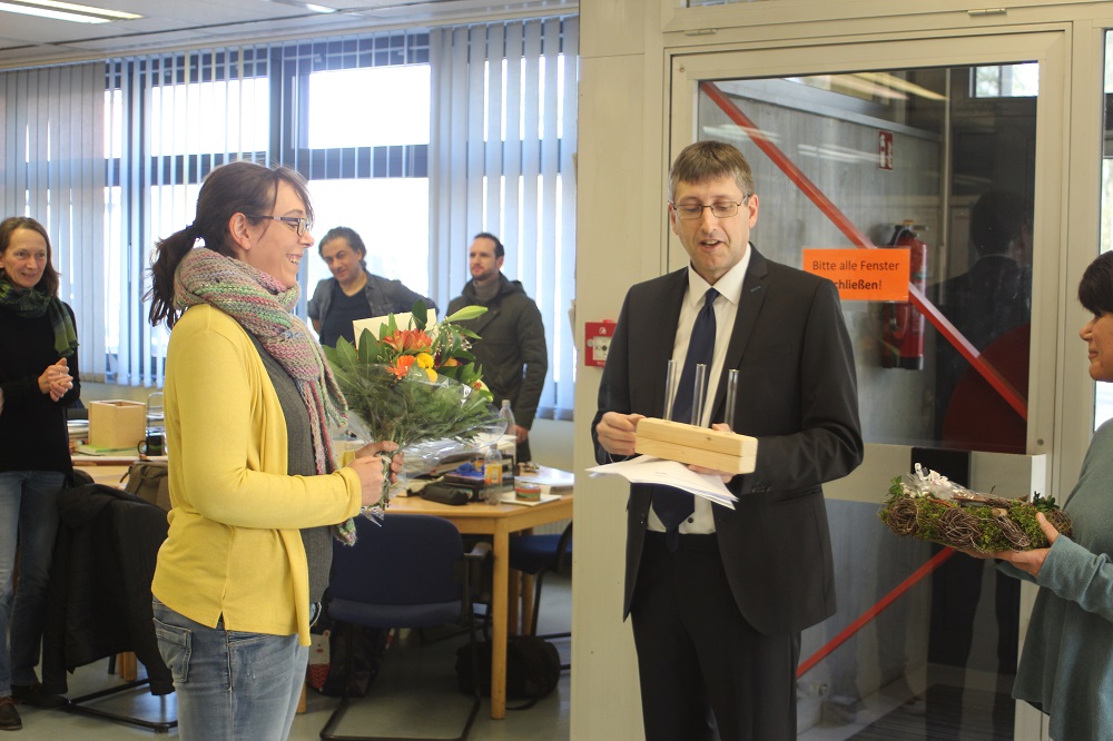 Am 28.02.2020 wurde Stefanie Gras von Herrn Schäfer im Namen der Schulgemeinde verabschiedet. Frau Gras hat seit 2018 an der Henry-Benrath-Schule als Verwaltungskraft gearbeitet. Schäfer bedankte sich im Namen der geleisteten Arbeit bei Frau Gras. Er bedauerte, dass sie die Schule verlasse und wünschte Ihr für Ihren weiteren Weg. Gras wechselt auf eigenen Wunsch als Verwaltungskraft in den Ostkreis. Den Wünschen der Schulleitung schloss ich Frau Tews für den örtlichen Personalrat an.
