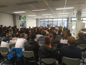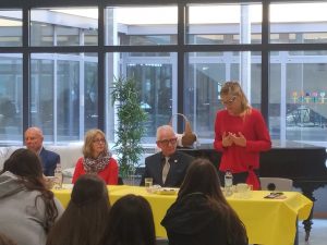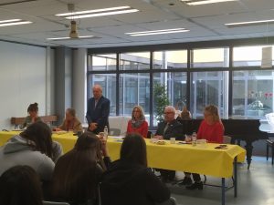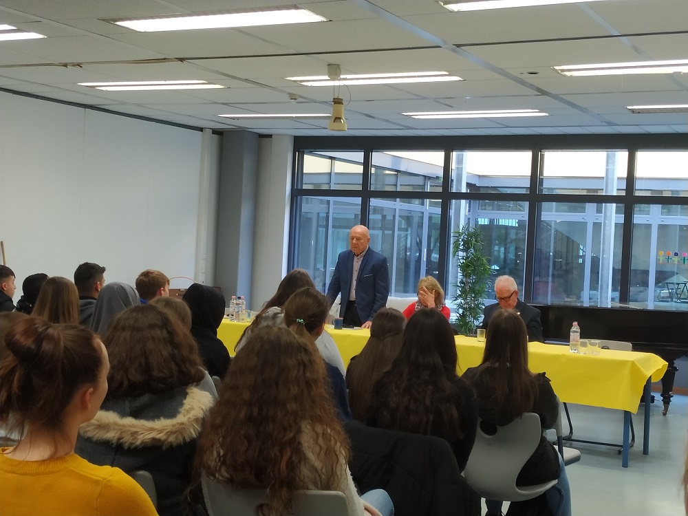 „Gab es Freundschaften in dem Konzentrationslager?“, „War eine Flucht möglich?“, „Kommen die Erinnerungen an diese Zeit immer wieder hoch?“ – all diese Fragen beantworteten die Überlebenden mit großer Geduld aber auch sichtbarer Dankbarkeit, dass die Schülerinnen und Schüler trotz der zeitlichen Distanz ein großes Interesse an dem Erlebten zeigten. Die Befragung endete mit einer aussagekräftigen Botschaft von einem der Zeitzeugen: „Ihr schreibt die Geschichte! Achtet euch, egal wo ihr herkommt!“